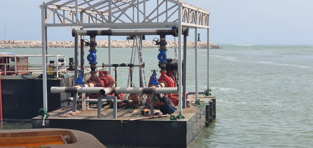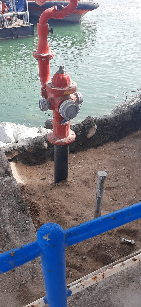 I was present as a workshop manager in this project. The final status of the project was 1.000.000$ This project was designed to implement the infrastructure of the fire pipeline and fire alarm system. Project Summary: Sea water is sucked from the sea by a pump and transferred into underground pipes and finally directed to hydrants and fire boxes. Because we wanted to use sea water, we had to build a utility dock on the water at a distance of 20 meters from the land. Due to the volume of sea water and the long distance from the pump suction site as well as the cavitation phenomenon, the pumping station cannot be built on land. To build a pumping station in the water, we first built a metal dock and then we restrained this dock with 4 metal piles that were driven into the sea. We implemented a pumping station on the wharf and used a bridge to access the wharf. At the same time, we dug and laid polyethylene pipeline 16 times for the water transmission system and implemented fire hydrants with monitors in the required places. We also implemented dry and wet fire extinguishers in other places. This system was automatically activated by reducing the pressure at the beginning of the route. In this way, if the hydrant or fire hose was activated in a place, then due to the decrease in pressure in the pumping station, the pumps started to suck sea water. We built 4 pumps in the pumping station. 2 jockey cargo pumps to compensate for small pressure drops and one large electric pump to compensate for noticeable pressure drops. In addition to these 3 pumps, we installed a diesel pump for power outages. The fire alarm network included push buttons and fire alarm sirens, so that we installed fire push buttons in different places and when they are activated, our sirens sound. We installed a central fire alarm board in the port administration building, which showed the location of the activated fire department.